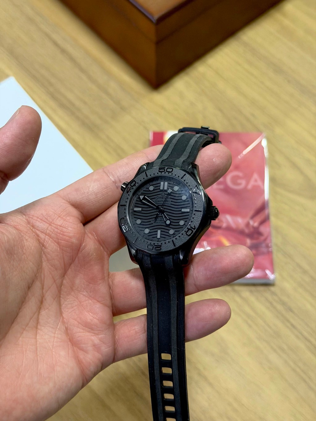 With a 42 mm case, its bold and sophisticated design is enhanced by a scratch-resistant sapphire crystal and a solid stainless steel case, ensuring durability and an elegant finish. In addition, the Omega Seamaster is water-resistant up to 20 ATM, making it ideal for water activities and everyday wear without worry.